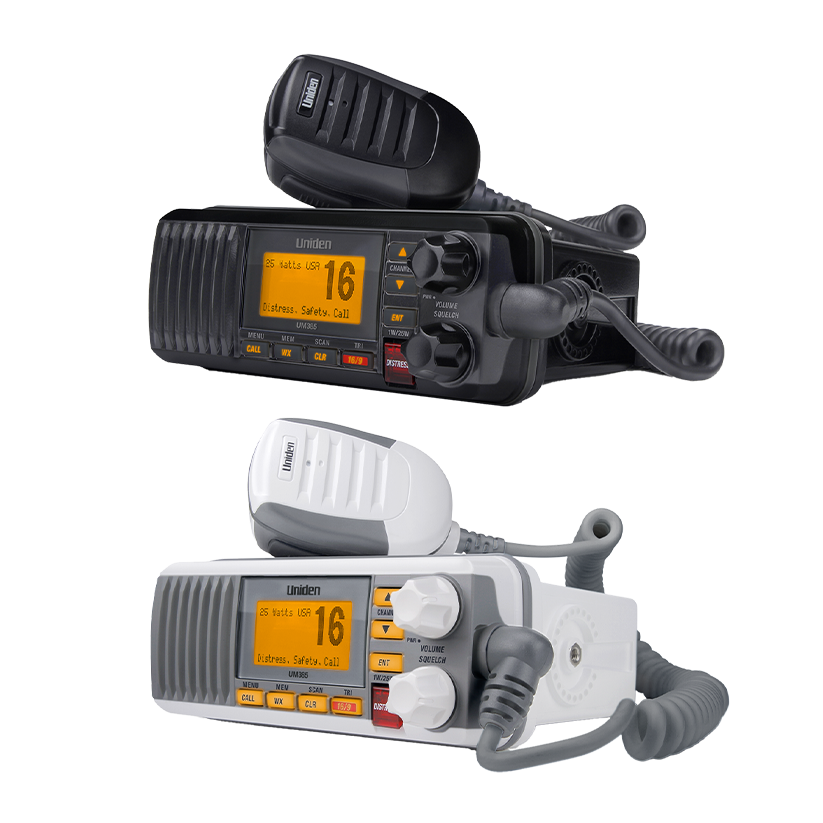 The Uniden UM385BK keeps you informed of what lies ahead with key features including Triple Watch, DSC capabilities, and a full range of marine channels. Add to that IPX4 waterproof protection and the ability to receive NOAA Weather and Emergency alerts, you will be safe regardless of what you face on the sea.